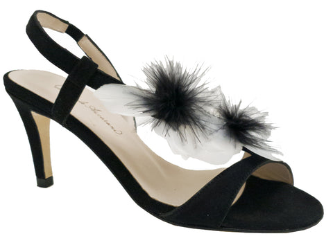 Stiletto sandal with cross-over strap and 3D flower detailing