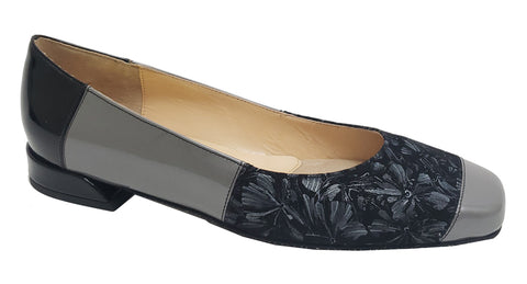 - Printed Floral Suede, Black/Grey Patent Colour-blocking